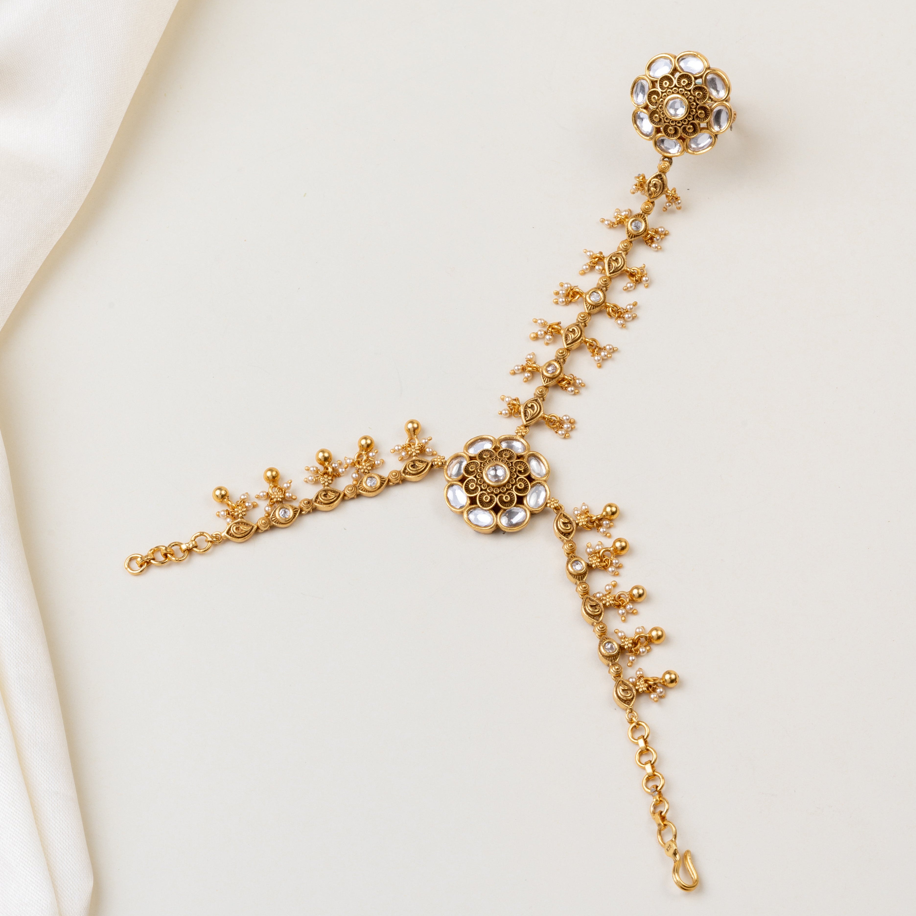 Regular price Rs. 40,900.00Sale price Rs. 40,900.00 Regular priceUnit price / perSilver Bridal Hathphool Material: 92.5 Silver Stones: Semi Precious T37/9