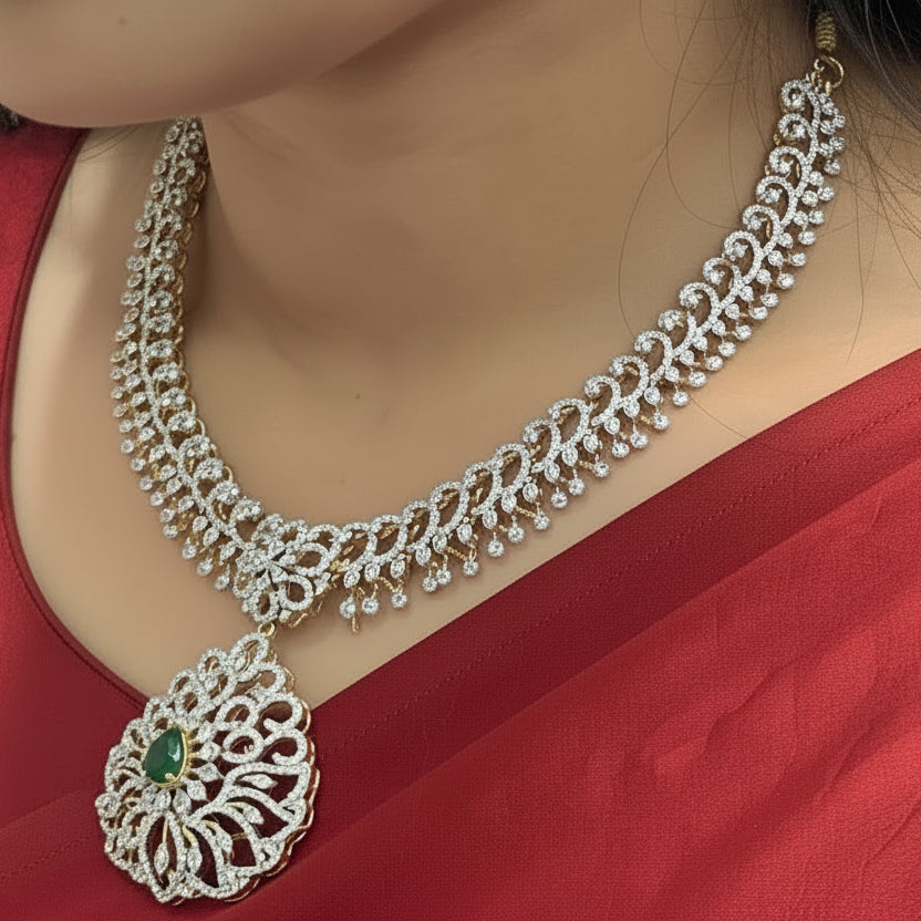 Regular price Rs. 126,000.00Sale price Rs. 126,000.00 Regular priceUnit price / perSilver Moissanite Necklace with Earrings Material: 92.5 Silver Finish: Yellow Gold T106/5