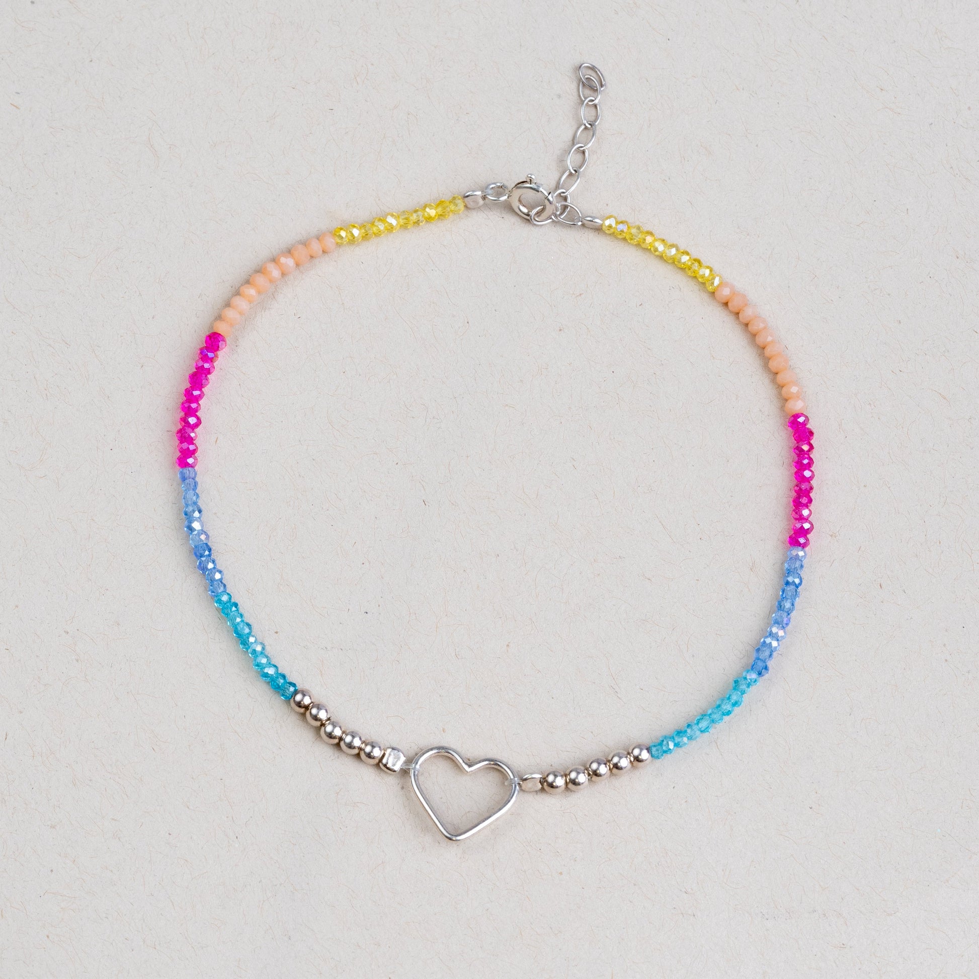 Multi color heart single leg anklet